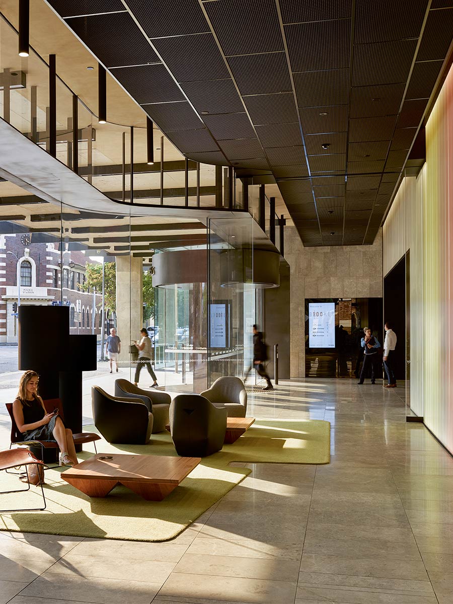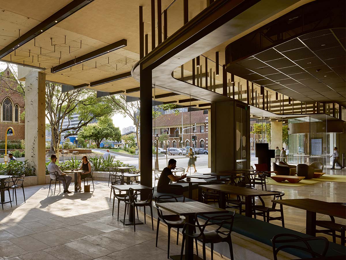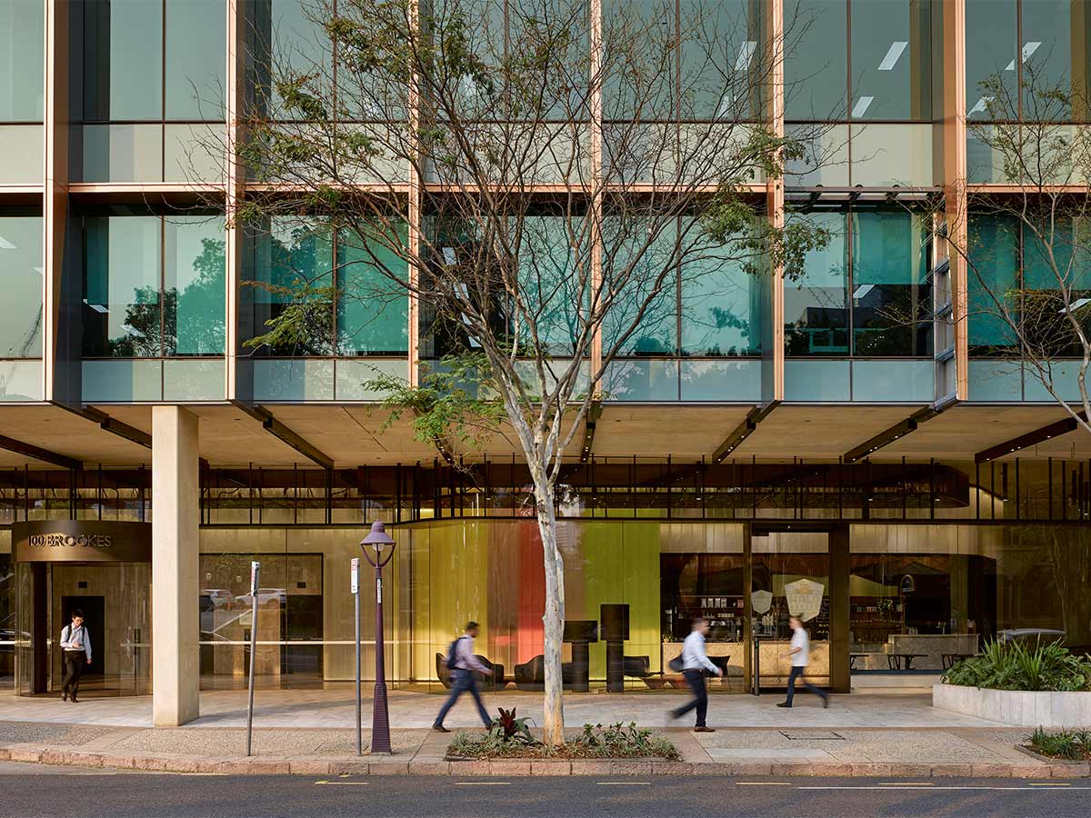 100 Brookes Street is an office building in the renowned Emporium precinct in Fortitude Valley. It was designed by Michael Rayner and Casey Vallance at their previous practice Cox Rayner over a decade ago. Dramatically increased public activity around the building prompted the building owners to revitalise the public interface with a new foyer and café.